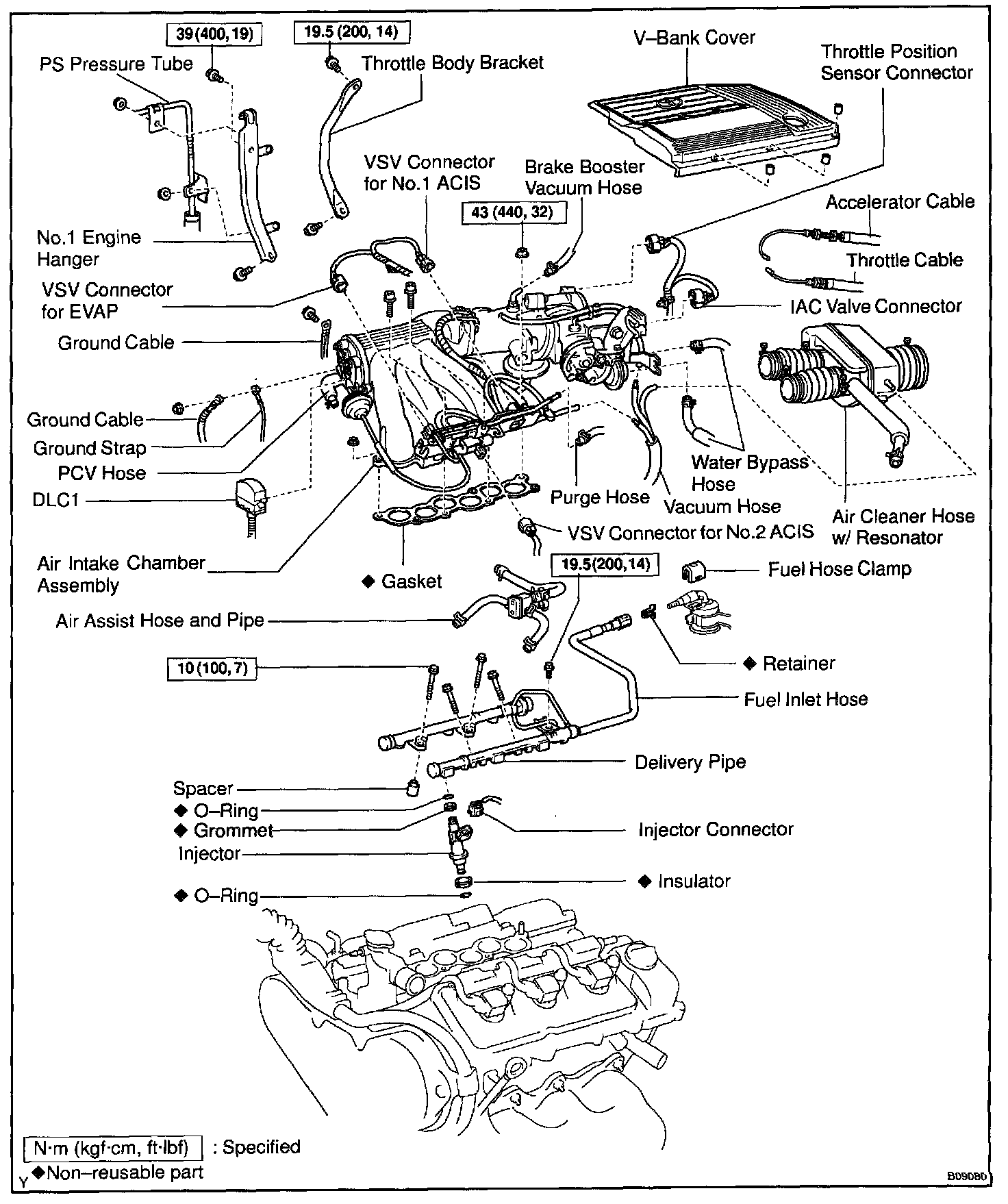 n. Tighten the bolt holding the No.1 fuel pipe to the intake manifold.