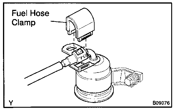 c. Surely install the fuel hose clamp to the fuel filter with "click" sound.