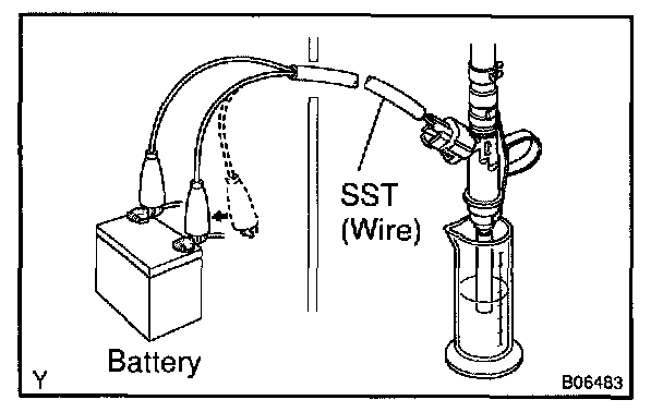 k. Connect SST (wire) to the injector and battery for 15 seconds, and measure the injection volume with a graduated cylinder. Test each injector 2 or 3 times.