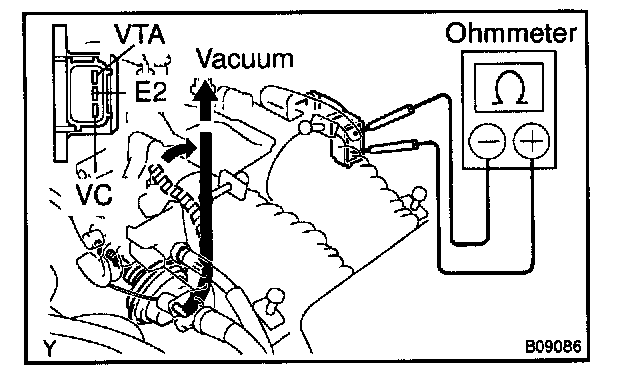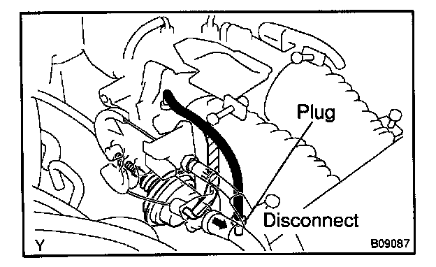 c. Disconnect the vacuum hose from the throttle opener, and plug the hose end.
