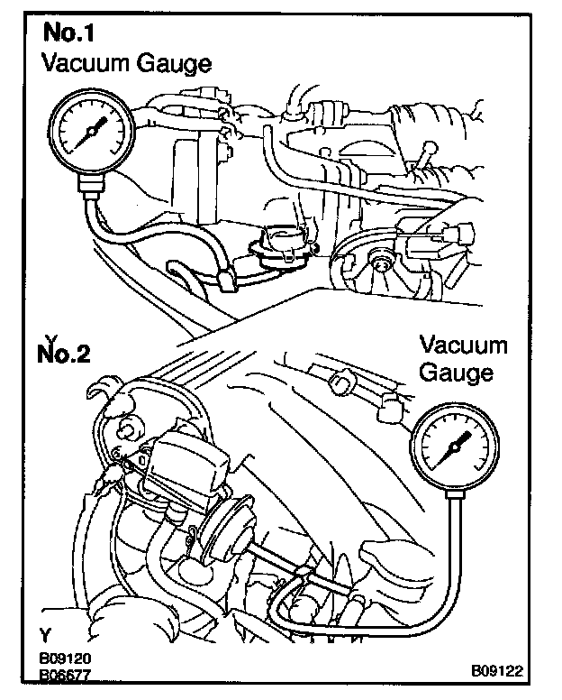 c. While the engine is idling, check that the vacuum gauge needle does not move.