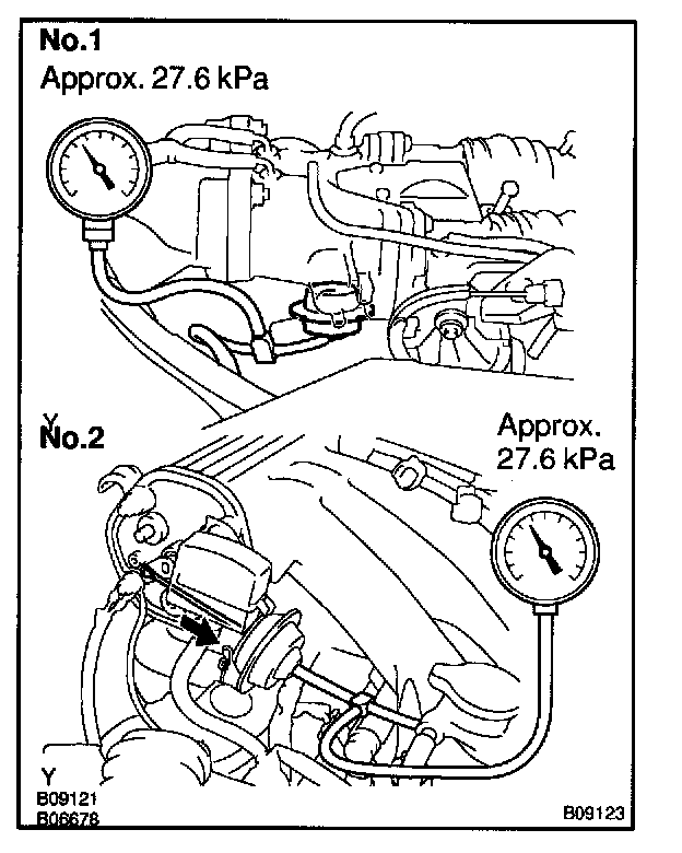 a. Using a 3-way connector, connect vacuum gauge to the actuator hose.