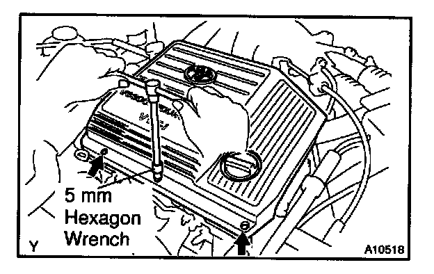 a. Using 5 mm hexagon wrench, install the V-bank cover with the 3 cap nuts.