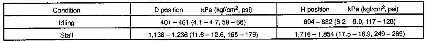 8. Depress the accelerator pedal all the way down. Quickly read the highest line pressure when engine speed reaches stall speed.