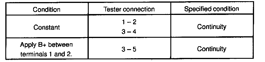 1) Apply battery positive voltage across terminals 1 and 2.