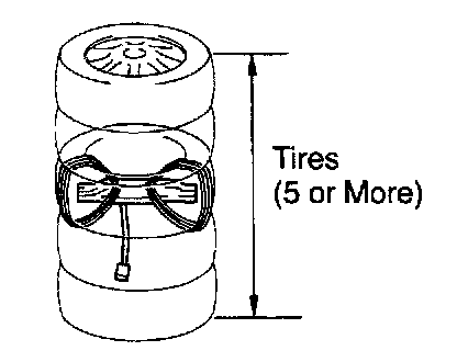 2. Place at least 2 tires over the tire to which the side airbag assembly is tied. The top tire should have the wheel installed.