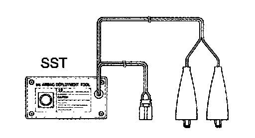 - When deploying the airbag, always use the specified SST (SRS Airbag Deployment Tool). Perform the operation in a place away from electrical noise.