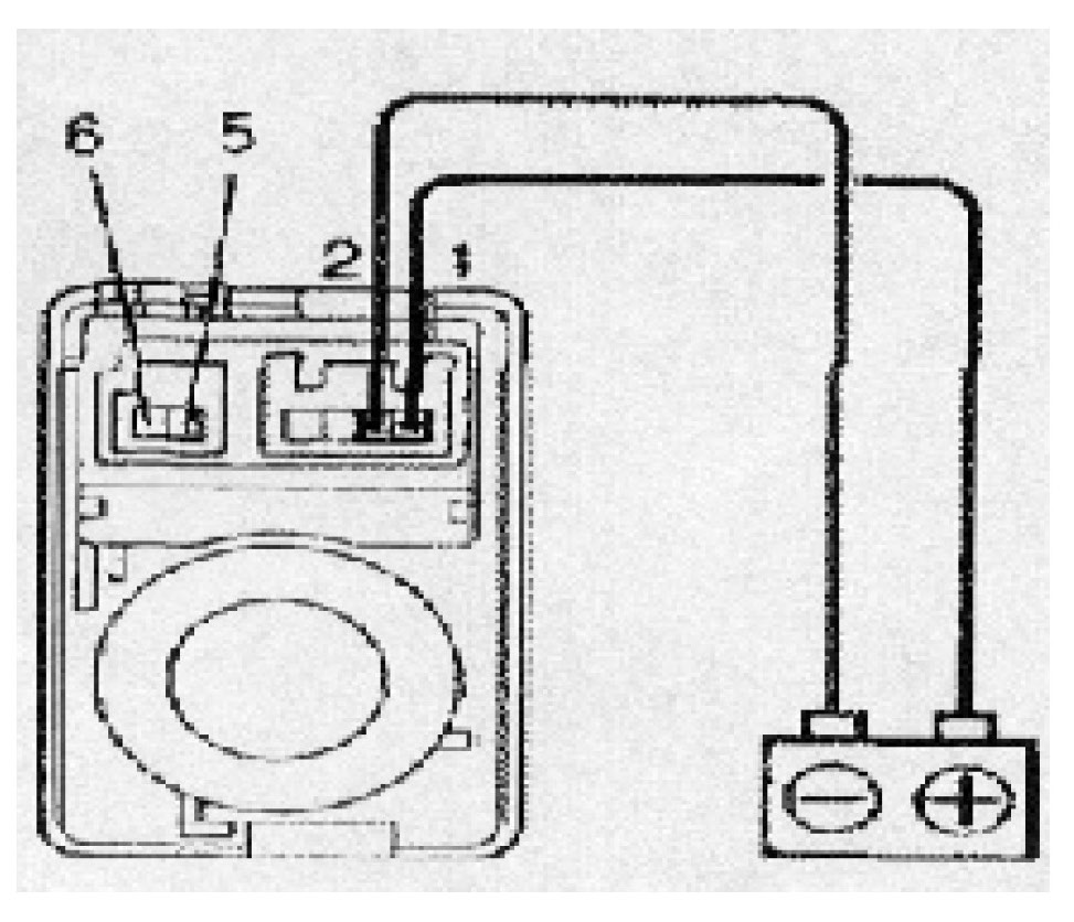 b. Connect the positive (+) lead from the battery to terminal 1 and negative (-) lead to terminal 2.