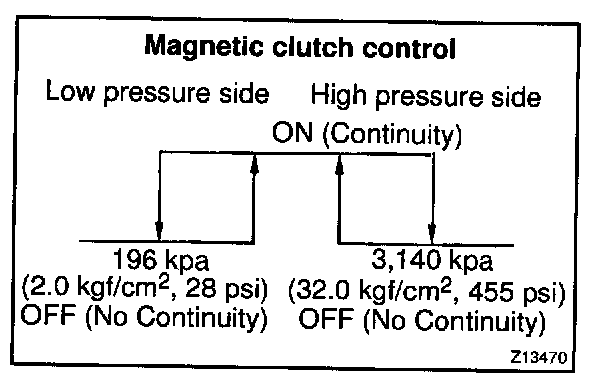 b. Check continuity between terminals when refrigerant pressure is changed, as shown in the illustration.