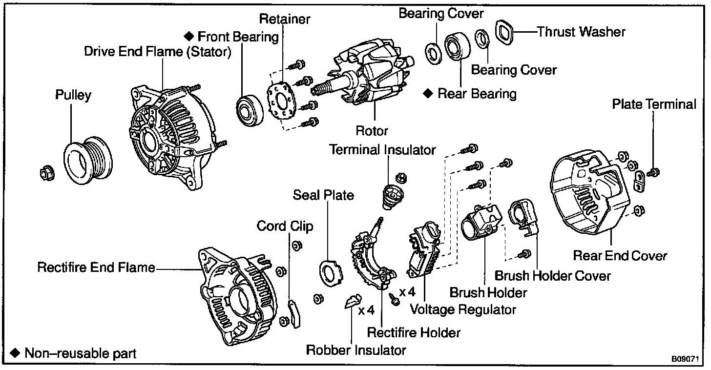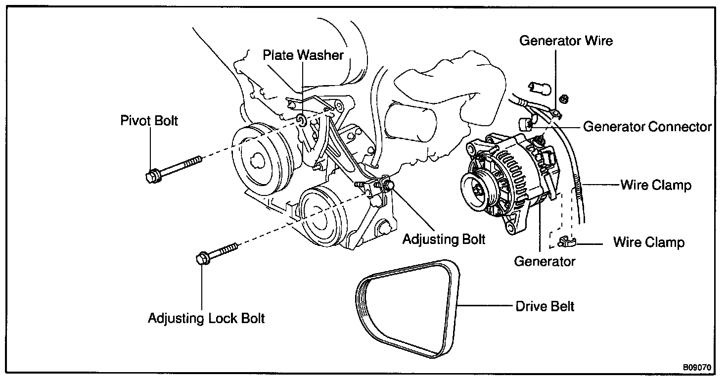 d. Remove the pivot bolt, plate washer, adjusting lock bolt and generator.