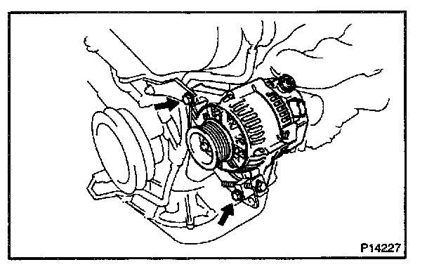 Loosen the pivot bolt, adjusting lock bolt and adjusting bolt, and remove the drive belt.