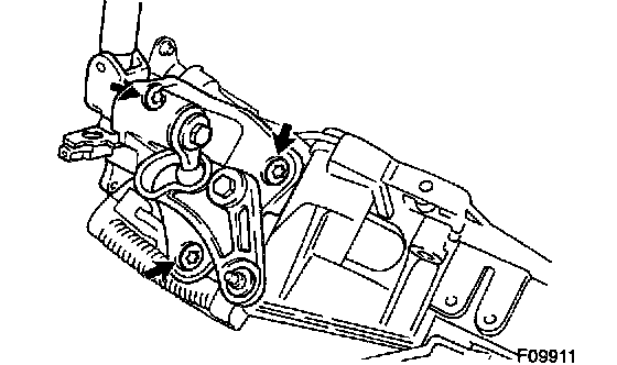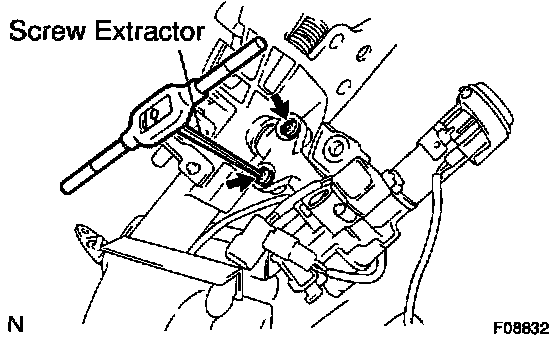 c. Using a screw extractor, remove the 2 bolts and column upper bracket.