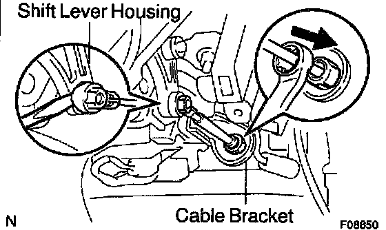 b. Using a offset wrench (23 mm), disconnect the transmission control cable from the cable bracket of the column tube.