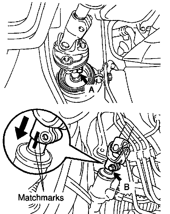 c. Loosen the bolt A and remove the bolt B, then disconnect the intermediate shaft sub-assembly.