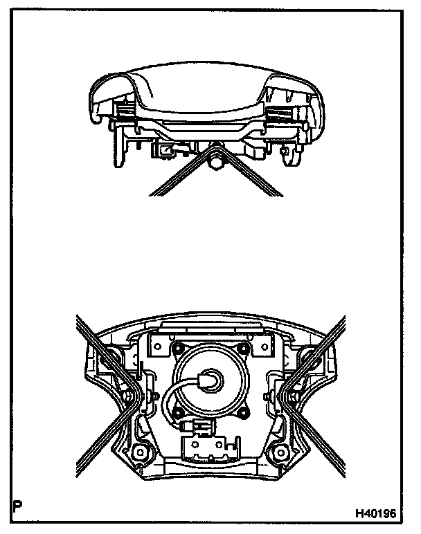 CAUTION: When storing the steering wheel pad, keep the upper surface of the pad facing upward.