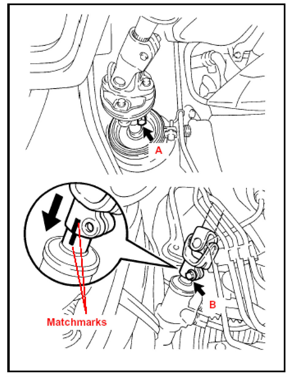 2. Place matchmarks on the intermediate shaft sub assembly and control valve shaft.