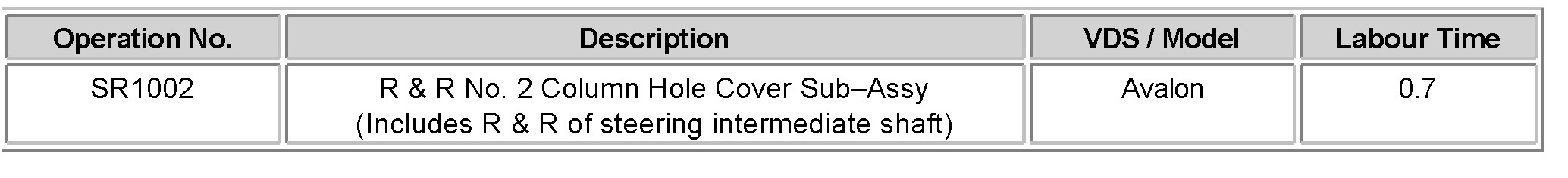 Some 2000 - 2001 model year Avalon vehicles may exhibit a low frequency noise when the steering wheel is turned at low speeds. The shape of the No. 2 Column Hole Cover Sub Assembly has been changed to reduce the noise.