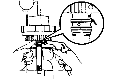 c. Using a snap ring expander, install the snap ring. Be sure the end gap of the snap ring is not aligned with the spring retainer claw.
