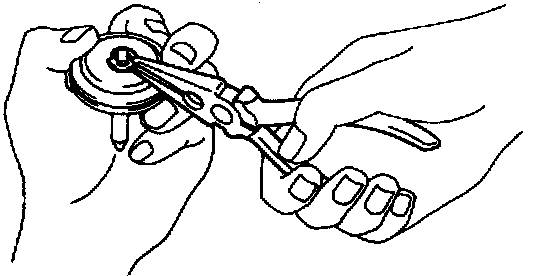 b. Using needle nose pliers, install the E-ring while pushing the piston.
