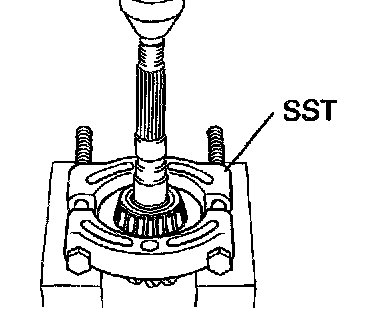 e. Using SST, press out the bearing.