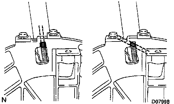 NOTICE: When operating the shift lever sub-assembly, check that excessive force is not applied to the wire harness of the O/D main switch.