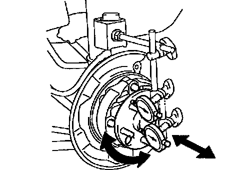 b. Using a dial indicator, check the deviation at the surface of the axle hub outside the hub bolt.