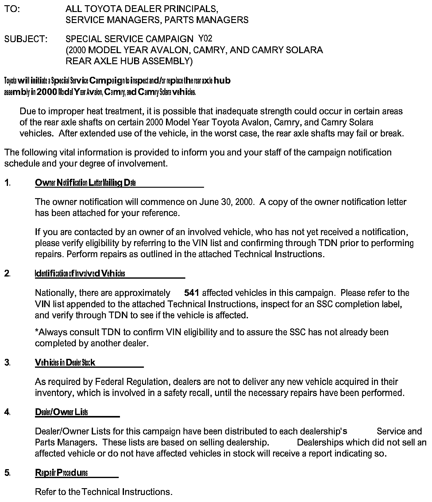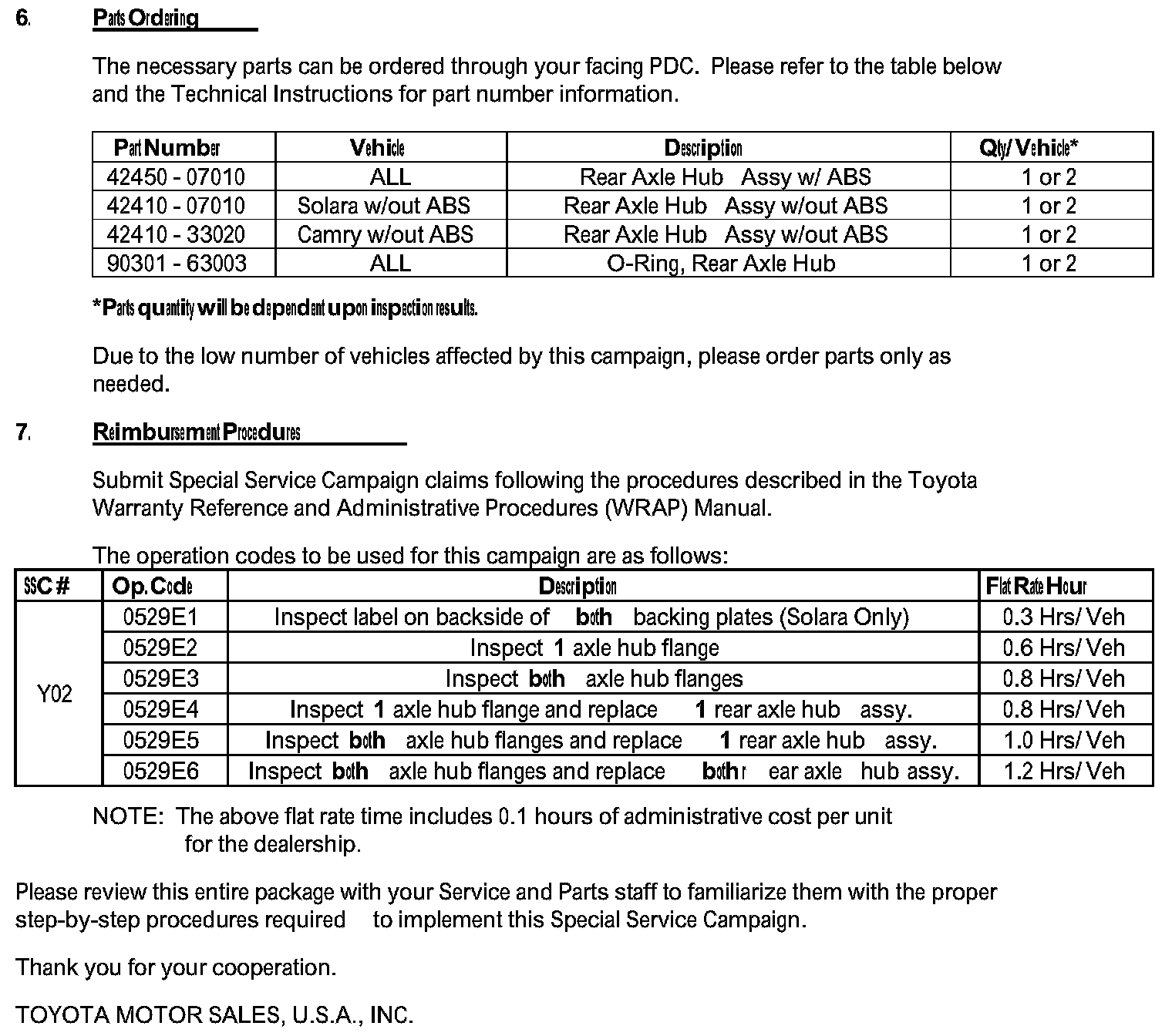 Recall - Rear Axle Hub Assembly Inspection/Replacement