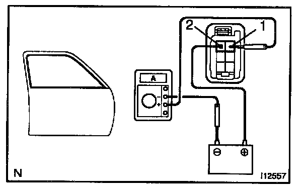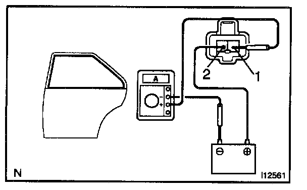 b. Connect the positive (+) lead from the ammeter to terminal 2 on the wire harness side connector and the negative (-) lead to negative terminal of the battery.