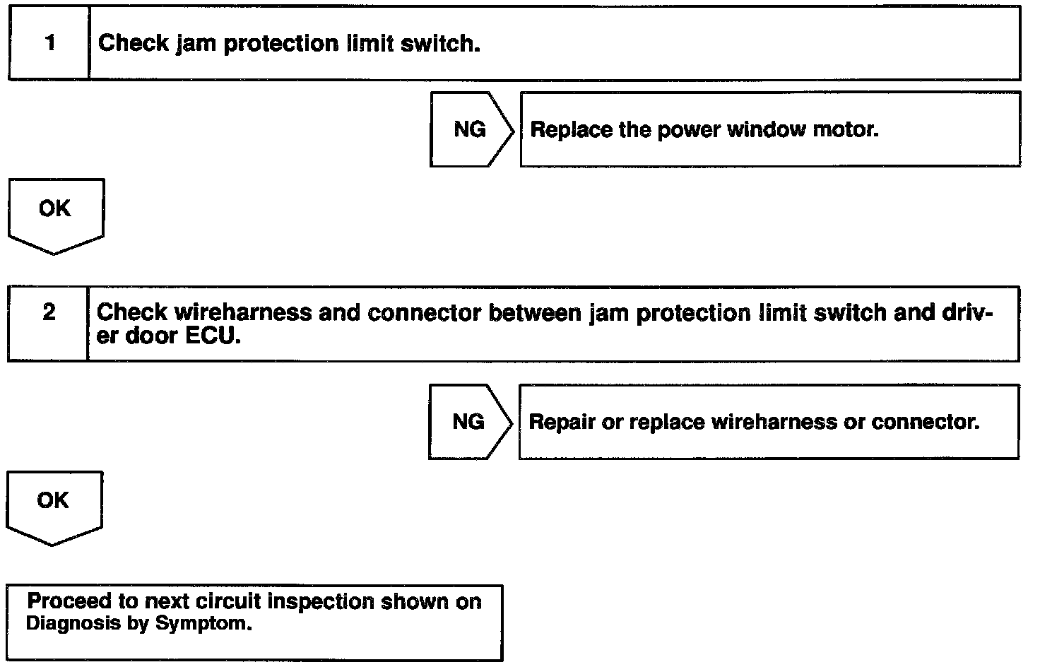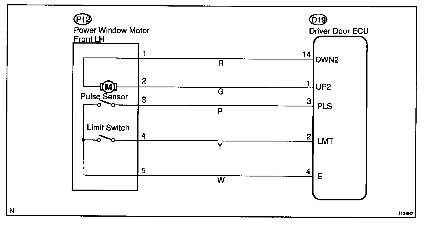 Jam protection limit switch is built-in the power window motor. This switch functions to turn "OFF" before the top dead center, and ECU reads this "OFF" signal resulting in closing the window fully.