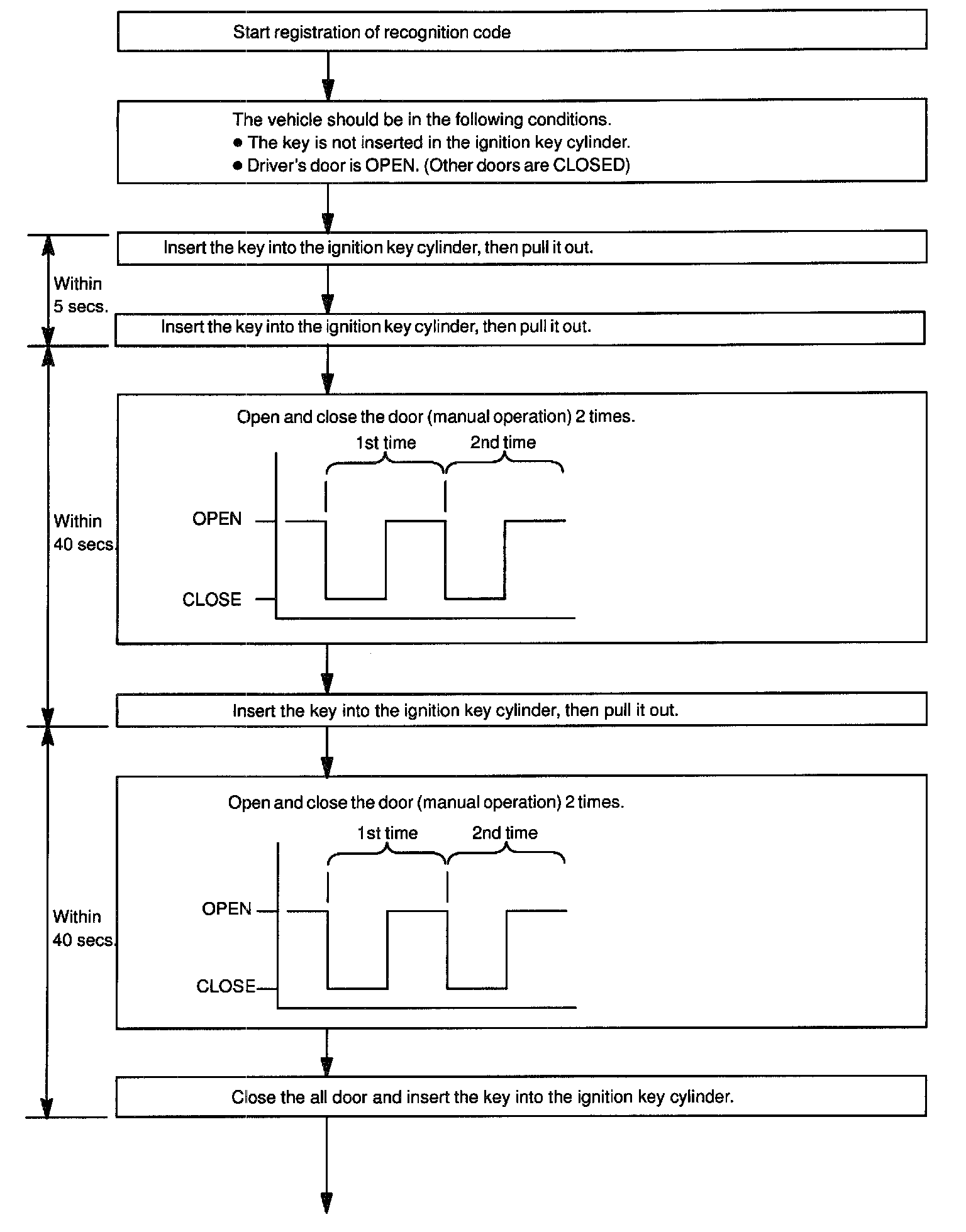 b. Follow the chart to register the transmitter recognition code at the wireless door lock control receiver.