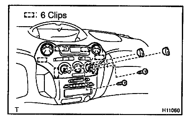 c. Using a screwdriver, release the 6 fitting clips and pull out the cluster finish panel, then disconnect the connectors.