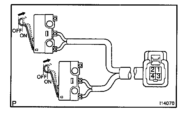 Check the continuity exists between terminal 3 and 4 while switch is pressed.