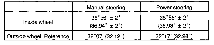If the right and left inside wheel angles differ from the specified value, check the right and left rack end lengths.