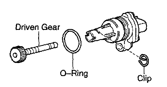 b. Remove the clip and driven gear from the vehicle speed sensor.