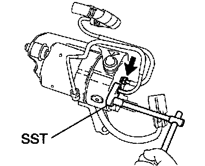 b. Using SST, disconnect the 2 brake lines from the precharge pump.