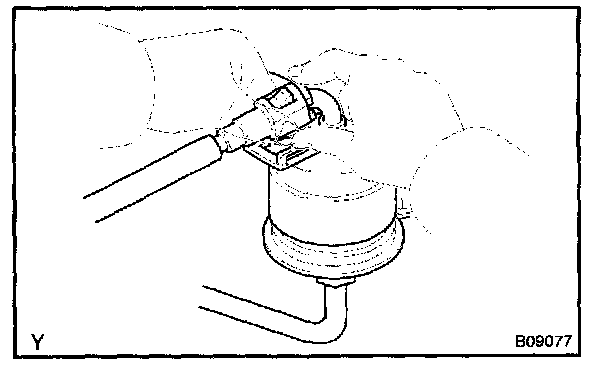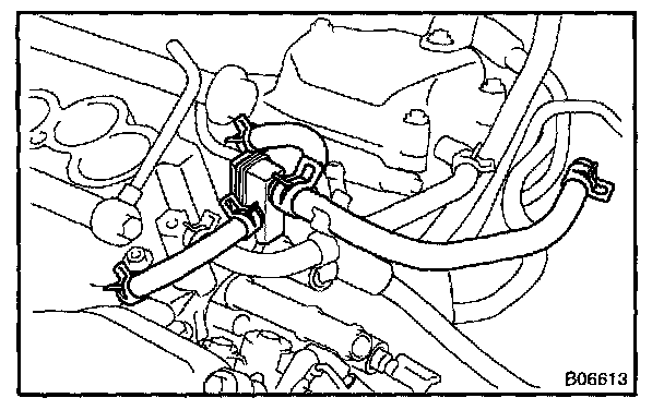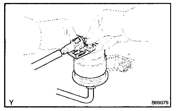 b. Disconnect the No.1 fuel pipe (fuel tube connector) from the fuel filter outlet.