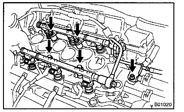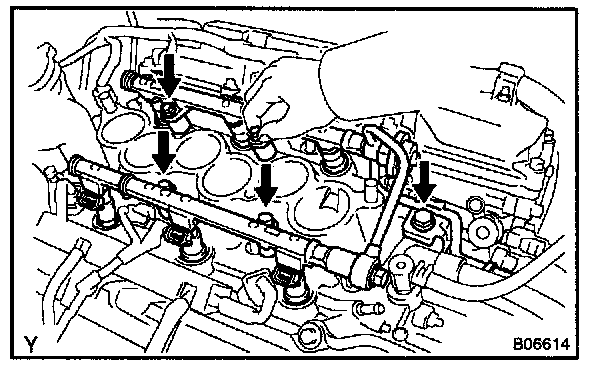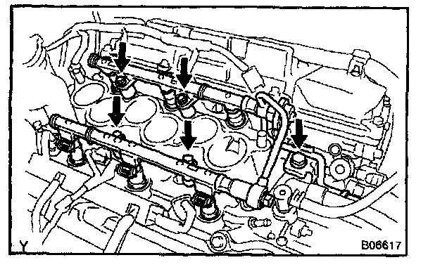 - Be careful not to drop the injectors when removing the delivery pipes.