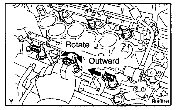 HINT: If injectors do not rotate smoothly, the probable cause is incorrect installation of O-rings. Replace the O-rings.