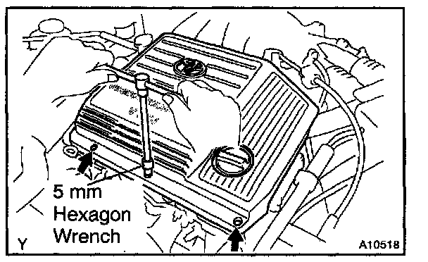 a. Using 5 mm hexagon wrench, install the V-bank cover with the 3 cap nuts.