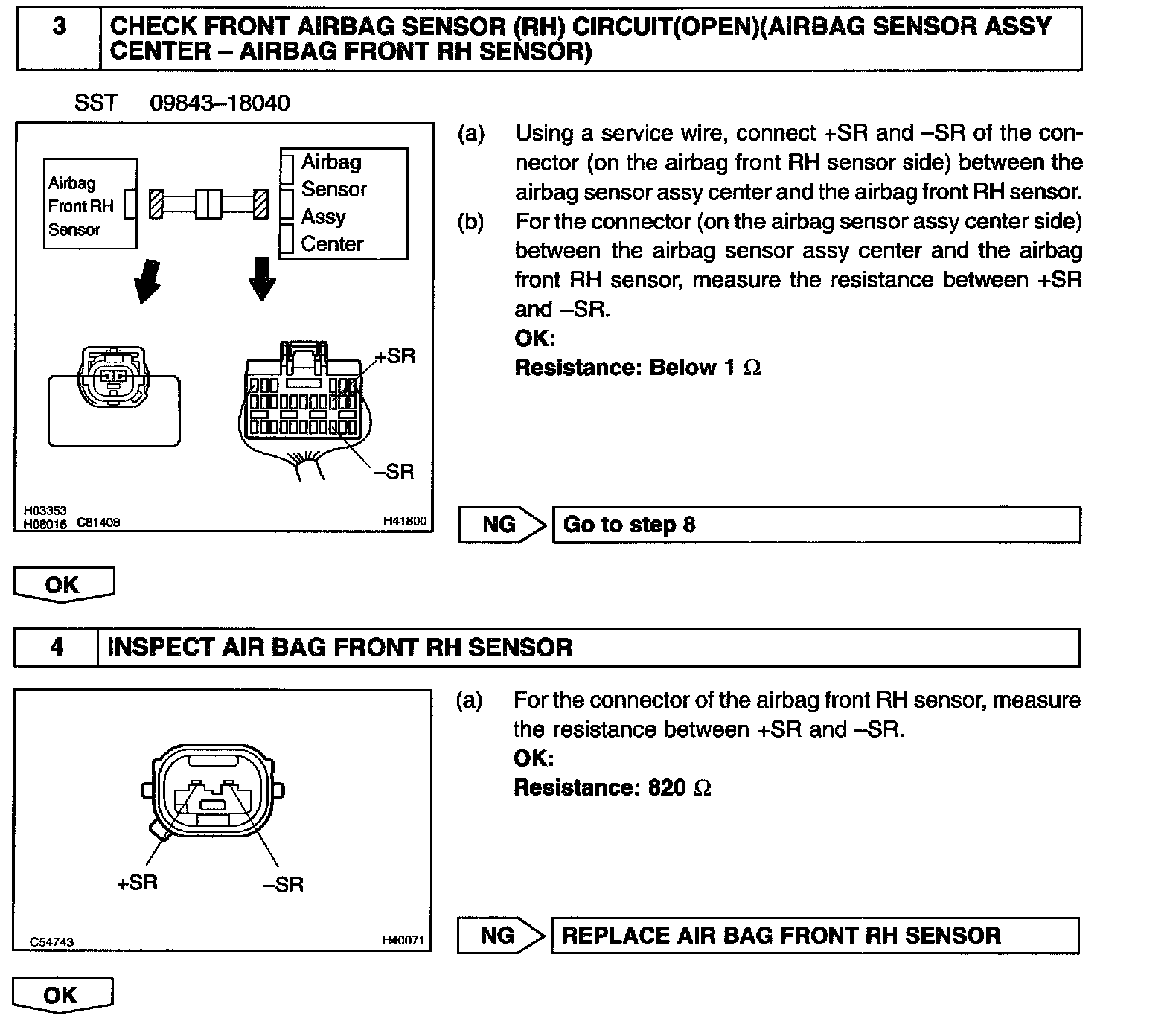 The airbag front RH sensor circuit consists of the airbag sensor assy center and airbag front RH sensor.