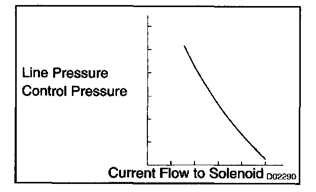 Upon receiving a signal of the throttle valve opening angle, the ECM controls the line pressure by sending a predetermined (*) duty ratio to the solenoid valve, modulating the line pressure and generating throttle pressure.