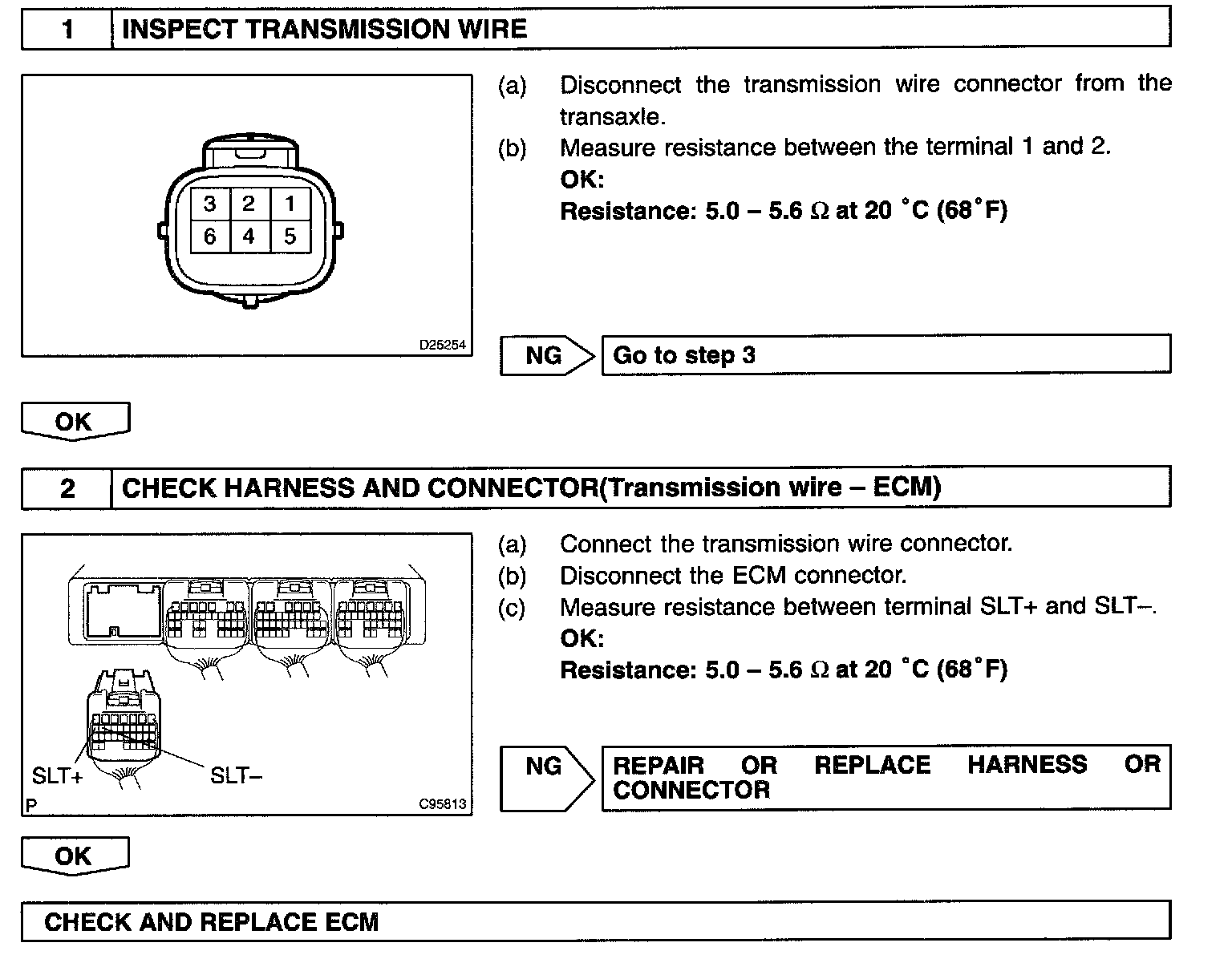 Check the waveform between terminals SLT+ and SLT- during the engine idling.