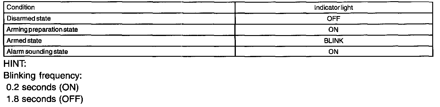 HINT: In the alarm sounding state, when either of the front doors is unlocked and no key is inserted in the ignition key cylinder, forced door lock signal is output.
