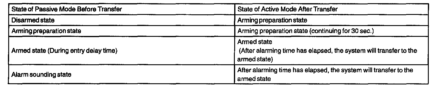 HINT: In each state of the passive mode, when the transferring condition to the active mode (disarmed state of active mode -> arming preparation state of active mode) is satisfied, the system will transfer to each state of the active mode. In this case, the active mode will continue until the system transfers to the disarmed state.