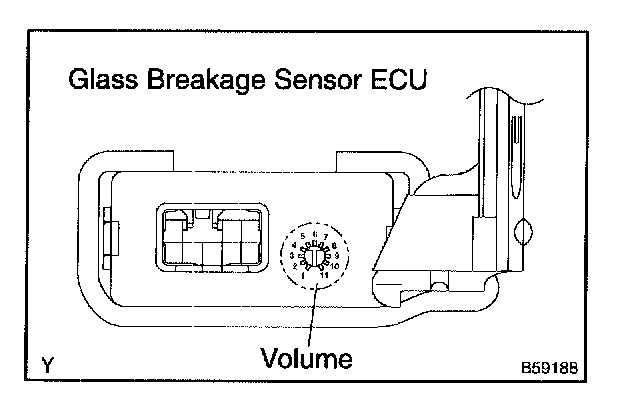 b. The sensitivity of the glass breakage sensor can be adjusted by the volume switch in the glass breakage sensor ECU.