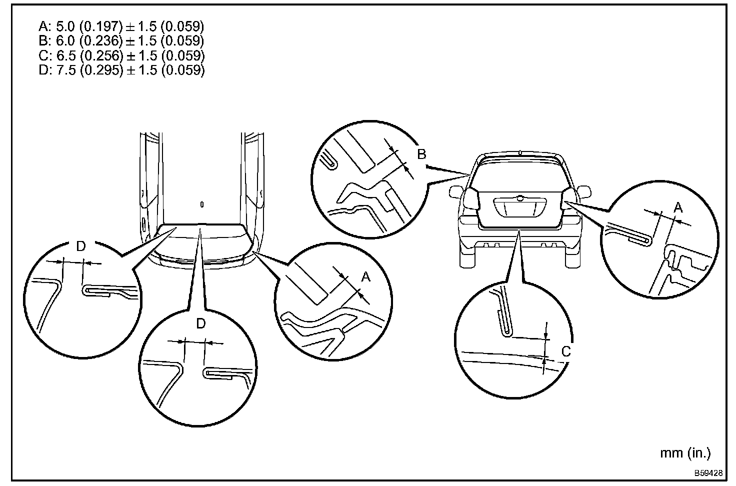 a. Check that the clearance measurements of areas A to D are within the standard range.