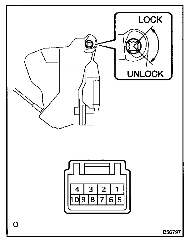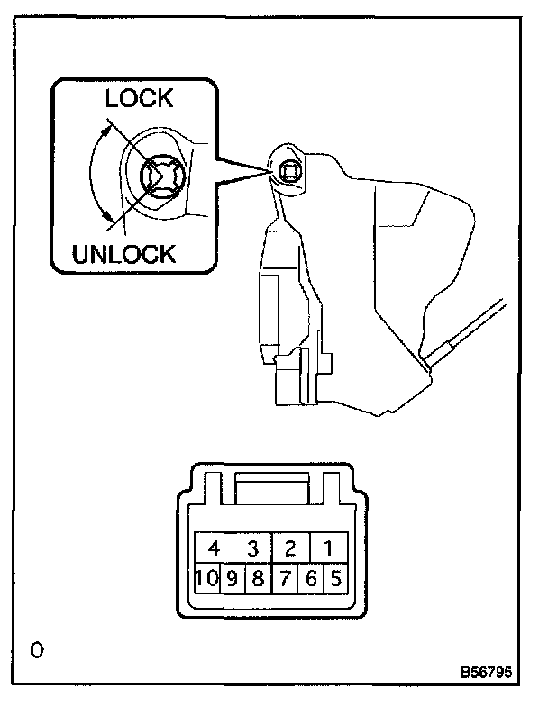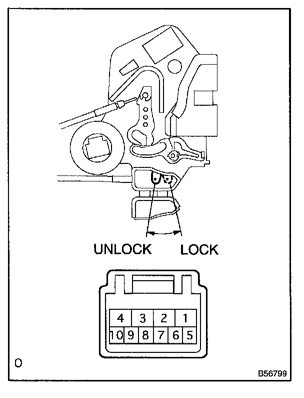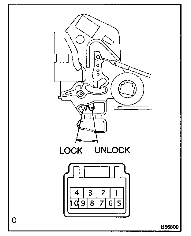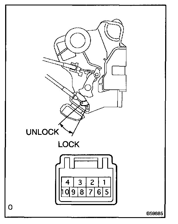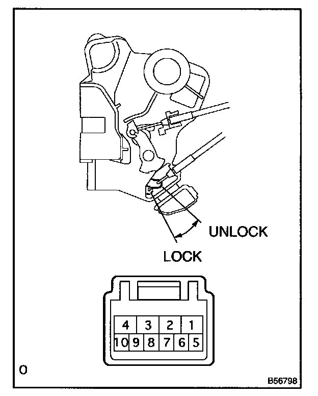 b. Inspect the door lock and unlock switch continuity, as shown in the illustration and table.