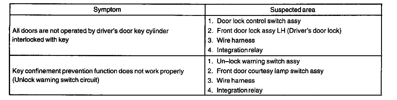 Problem Symptoms Table: