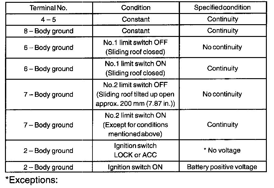 2. INSPECT SLIDING ROOF CONTROL RELAY