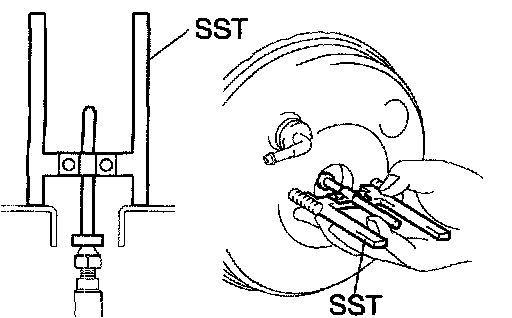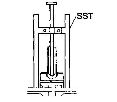 b. Set SST on the master cylinder and lower the pin of the SST until it slightly touches the piston.